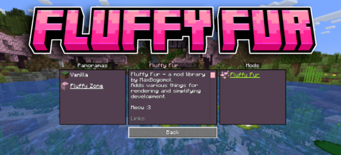 Нововведение Fluffy Fur для вашего игрового клиента, вы сможете открыть специальный инструментарий, которые вы сможете использовать для шейдинга, создания кастомных текстур в собственной игре. Весьма интересный мод, который открывает для вас интересные улучшения, и позволит вам создать красивую визуальную часть.